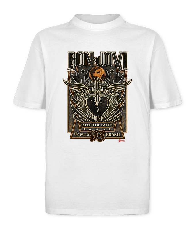 Uma única noite, 45 mil corações e uma fé inabalável. Nossa nova coleção faz referência à histórica passagem do Bon Jovi por São Paulo em 15 de Novembro de 1993, durante a “Keep The Faith Tour”.