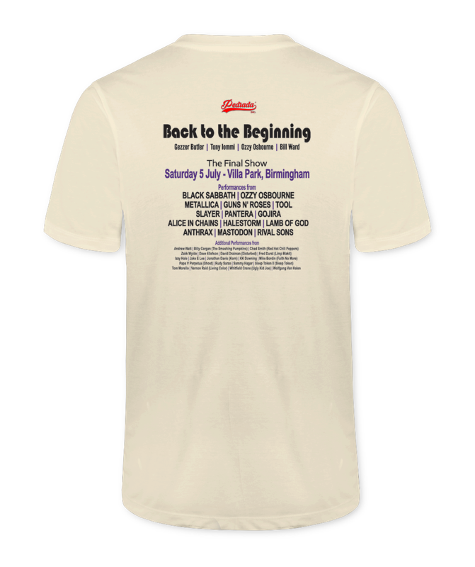 Estampa comemorativa do concerto “Back to the Beginning”, que marcou a reunião dos membros originais e a despedida do Black Sabbath.