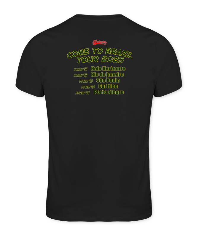 Inspirada na música do The Offspring, "Come to Brazil" e na turnê do novo álbum, que passará pelo Brasil em março de 2025. As costas da camiseta traz as datas e os locais dos shows.