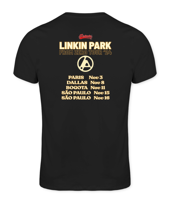 Essa estampa marca o retorno do Linkin Park e a estreia de sua nova vocalista Emilly Armstrong e o novo baterista Colin Brittain. A camiseta também traz as primeiras datas confirmadas na nova turnê mundial “From Zero”.