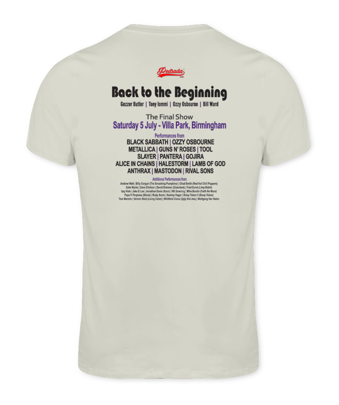 Estampa comemorativa do concerto “Back to the Beginning”, que marcou a reunião dos membros originais e a despedida do Black Sabbath.