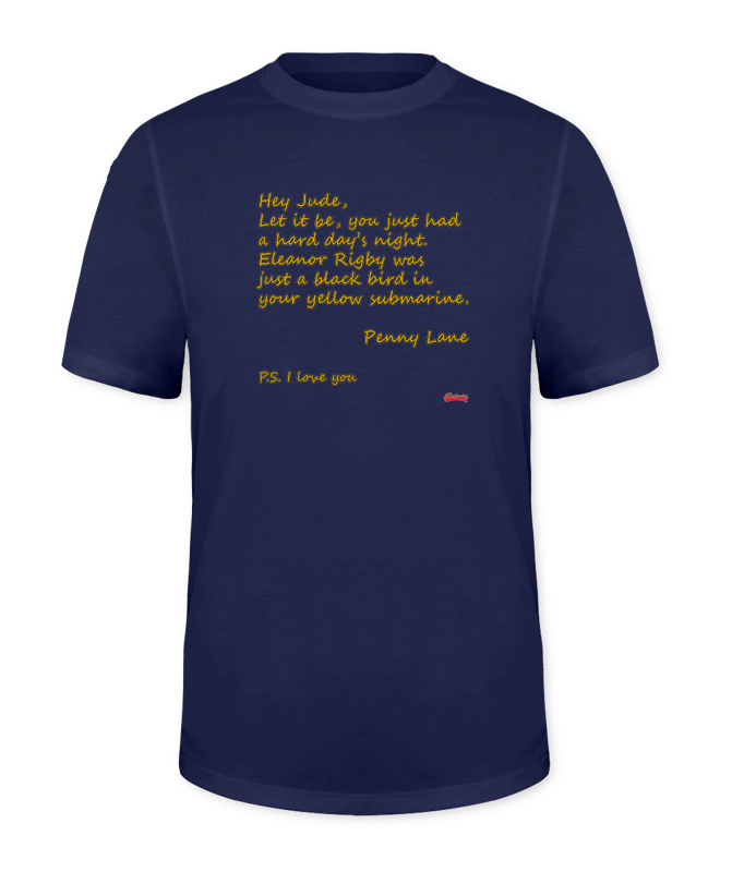 Essa estampa, “A Letter to Jude”, é escrita com os nomes de vários sucessos do quarteto de Liverpool. Hey Jude, Let It Be, A Hard Day’s Night, Eleanor Rigby, Black Bird Yellow Submarine, Penny Lane e P.S. I Love You. Essa camiseta foi feita pra quem é fã pra valer!